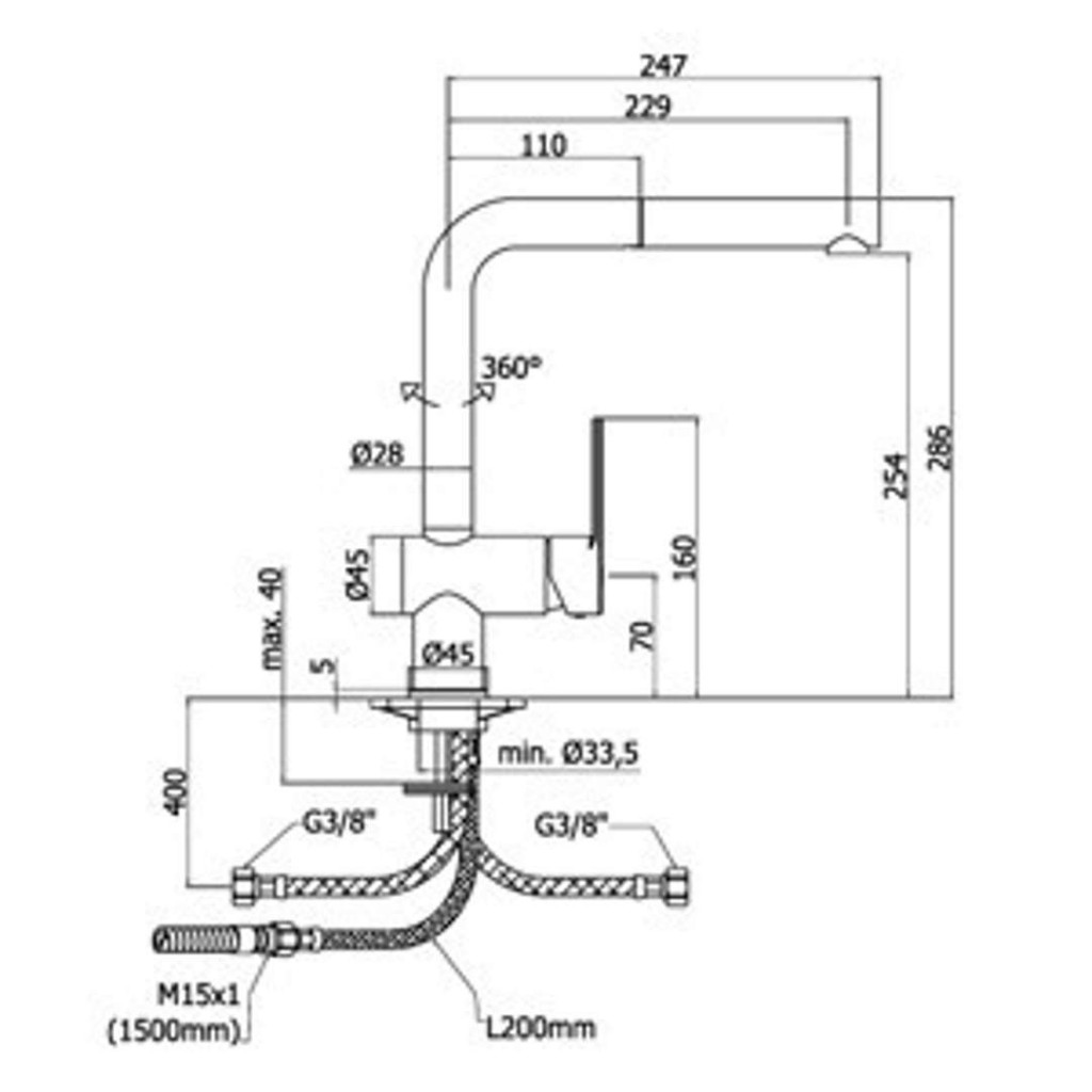 - set 2 nerezových hadičiek G 3/8 "pre pripojenie k roháčkům v dĺžke 45 cm