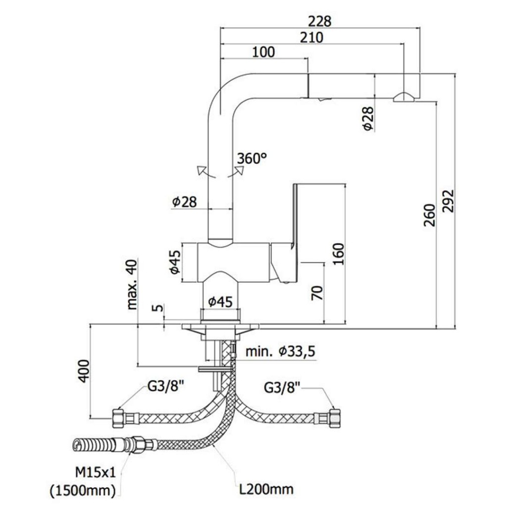 Kuchynská drezová stojanková páková batéria s vyťahovacou sprškou s dvoma prúdmi