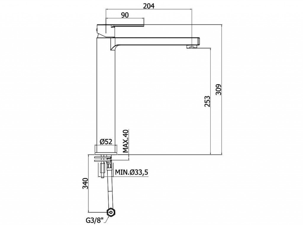 - dĺžka výtoku 204 mm, komfortná zóna 253 mm