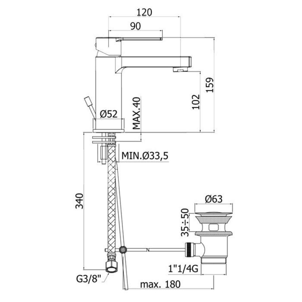 - dĺžka výtoku 120 mm, komfortná zóna 102 mm