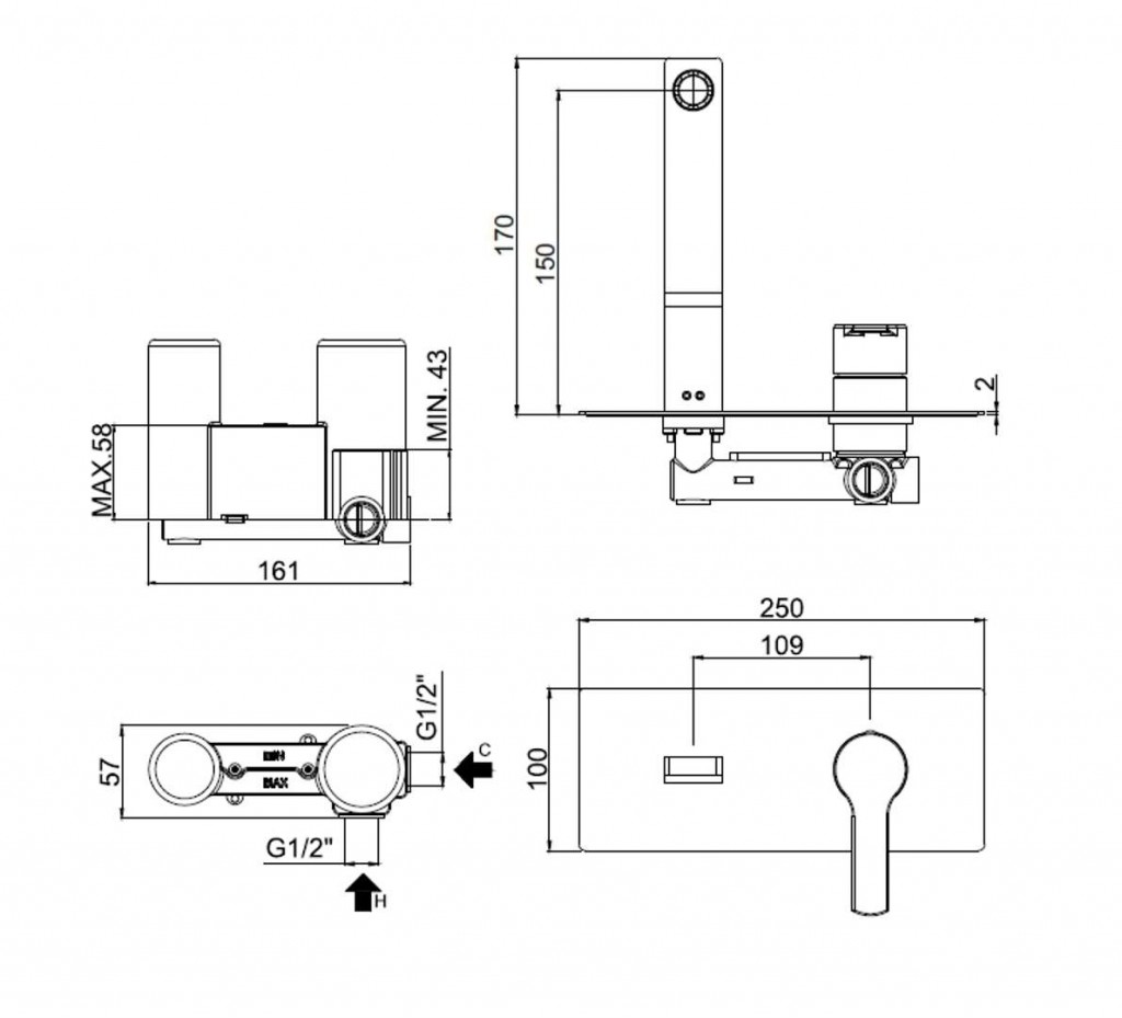 Umývadlová páková batéria pod omietku s telesom