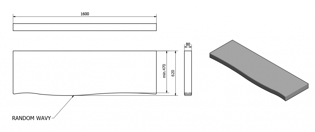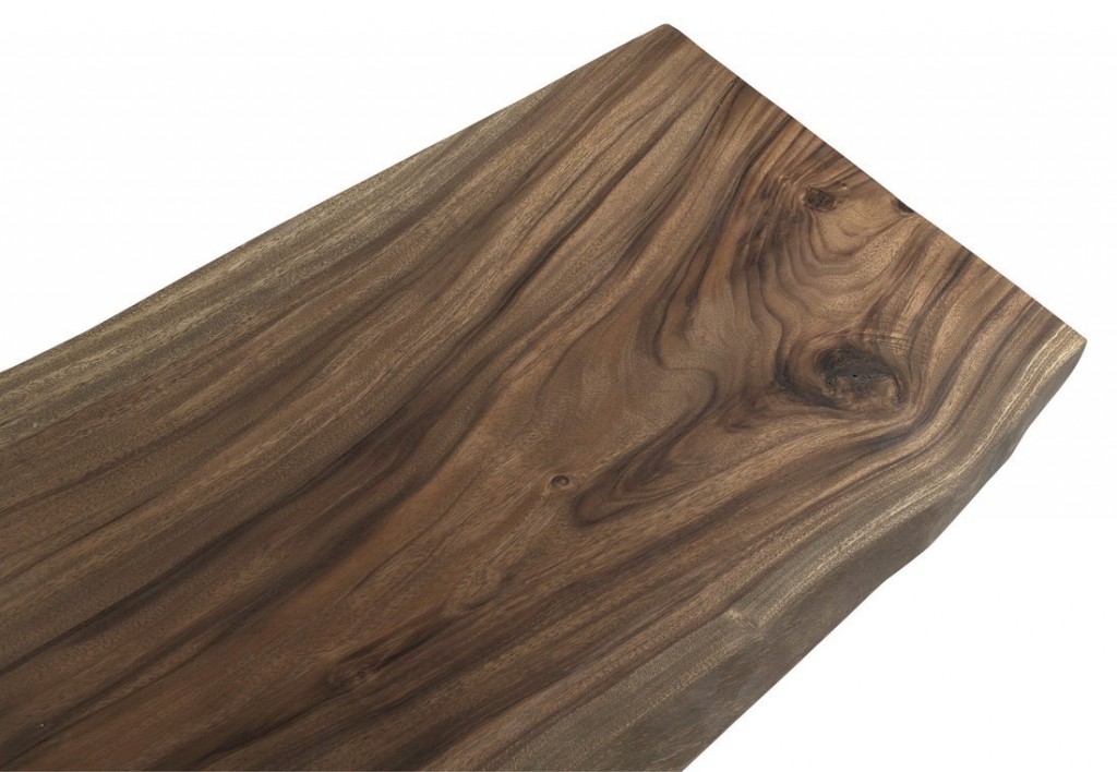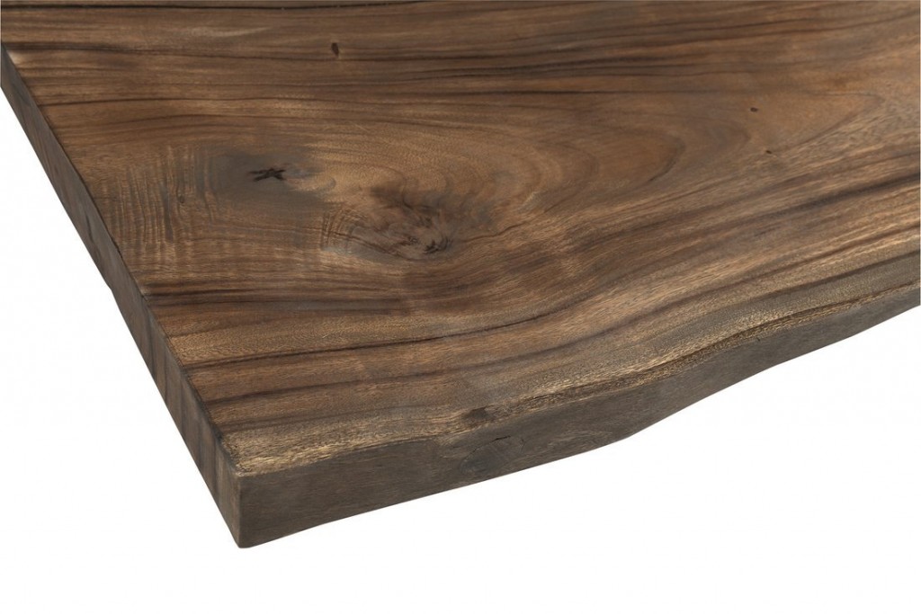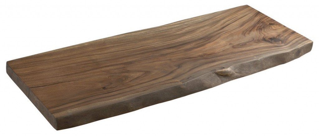 Prírodný charakter dosky podčiarkuje predná zvlnená hrana. Povrch dosiek je ošetrený teakovým olejom, vďaka čomu je umocnená farebná kresba dreva.