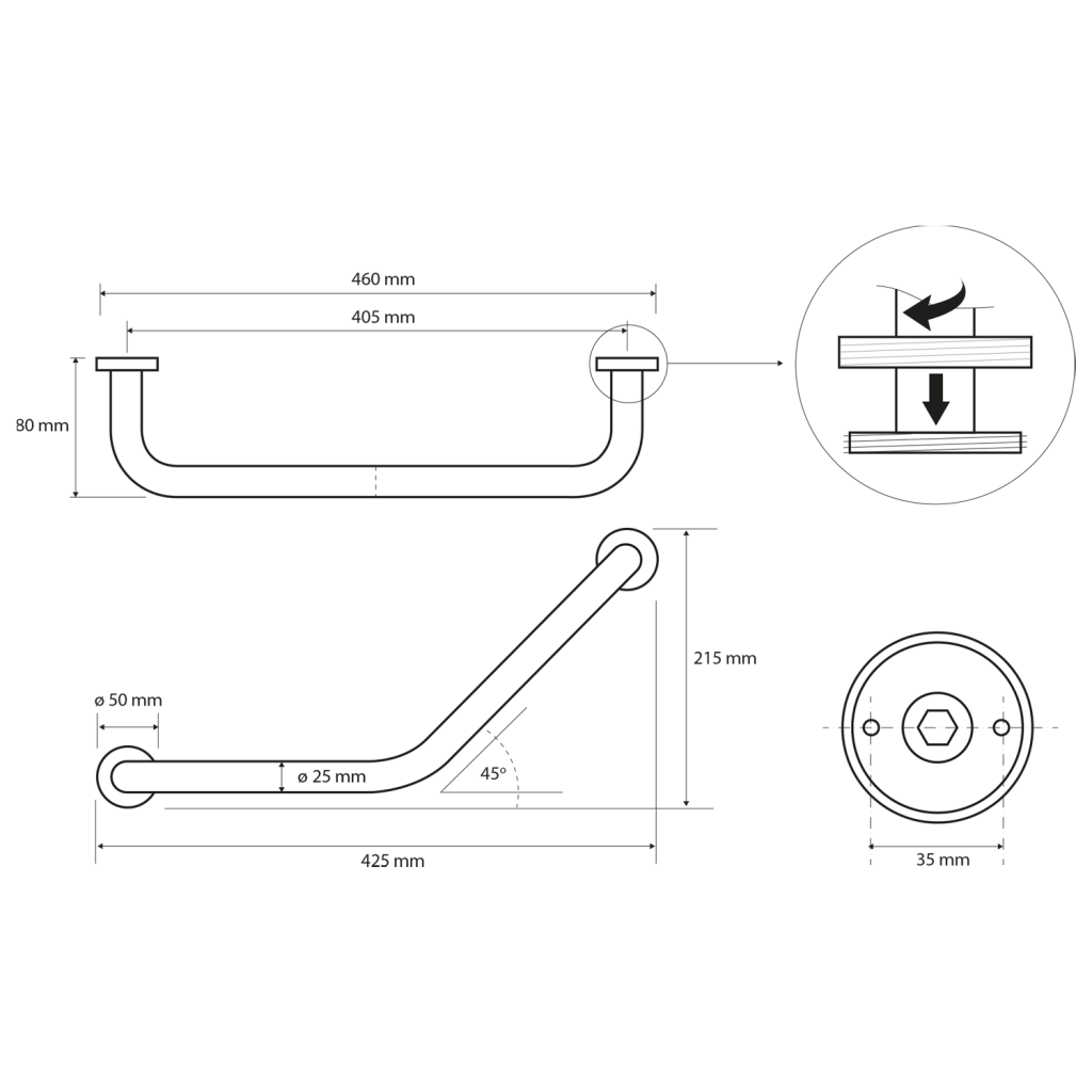 Pri inštalácii je možné voliť medzi variantom vŕtaného spoja alebo nalepením na obklady. V prípade zvolenia inštalácie lepením, je potrebné dokúpiť tovar v príslušenstve.