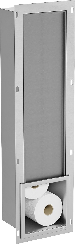 Veľmi praktickým riešením je modul X-Wall-B s úložným priestorom pre zásobu roliek toaletného papiera.