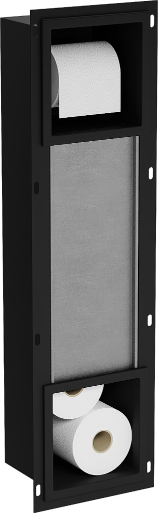 Veľmi praktickým riešením je modul X-Wall-BP s úložným priestorom pre roličky toaletného papiera. Vrchná polica je určená pre rolku, z ktorej sa ustrižky papiera odoberajú a spodná je ako zásobná.