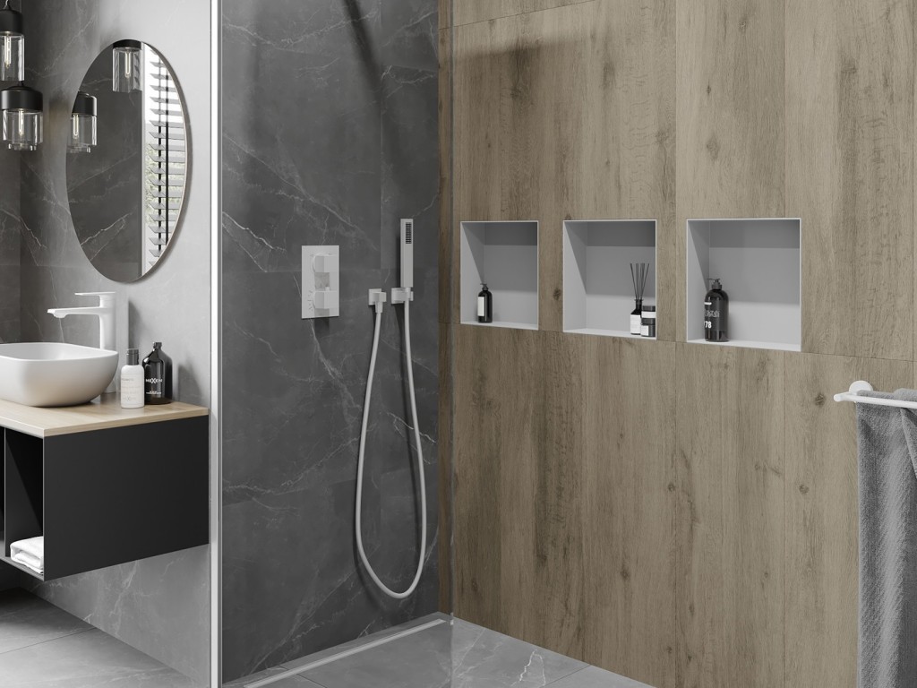 Veľmi praktickým riešením je modul X-Wall-NR s úložným priestorom na ukladanie kozmetických a dekoratívnych predmetov.