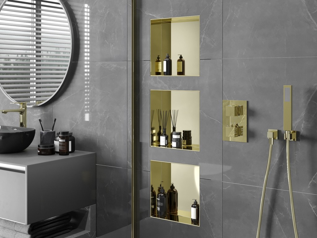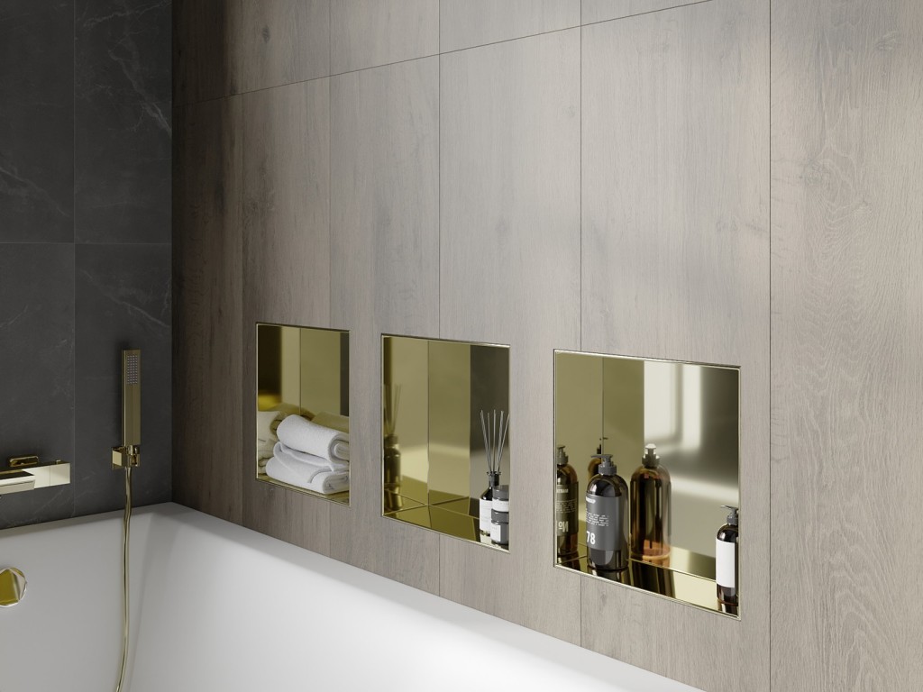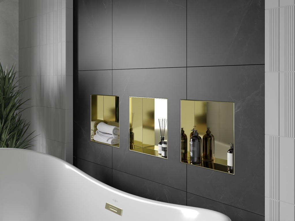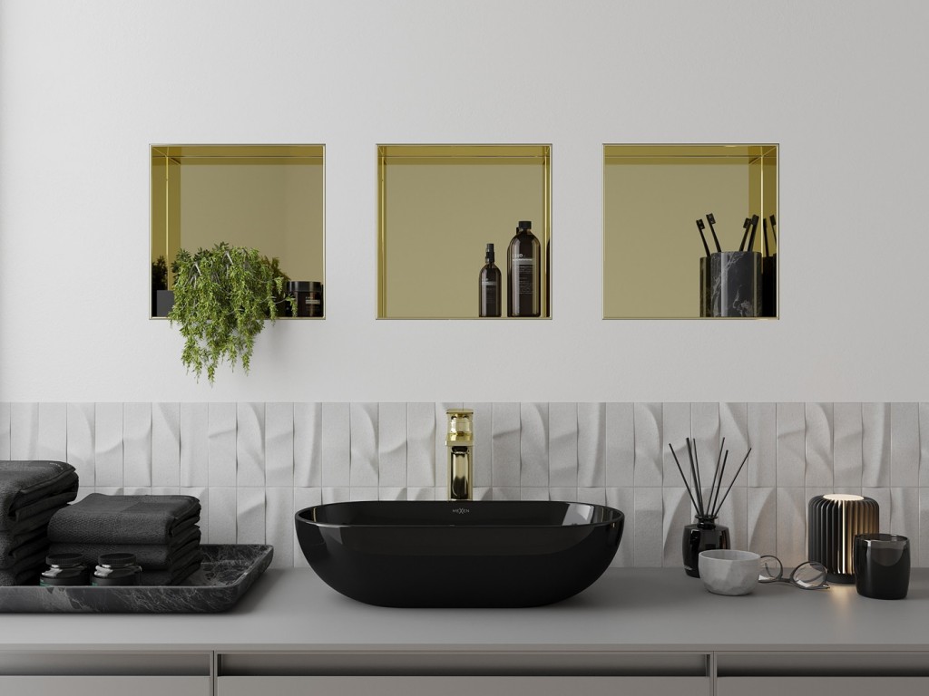 Podomietkový modul je dostupný vo farebných variantoch: biela, čierna, nerez a zlato . Výrobca MEXEN ponúka aj iné varianty políc série X-WALL pre vestabu ,