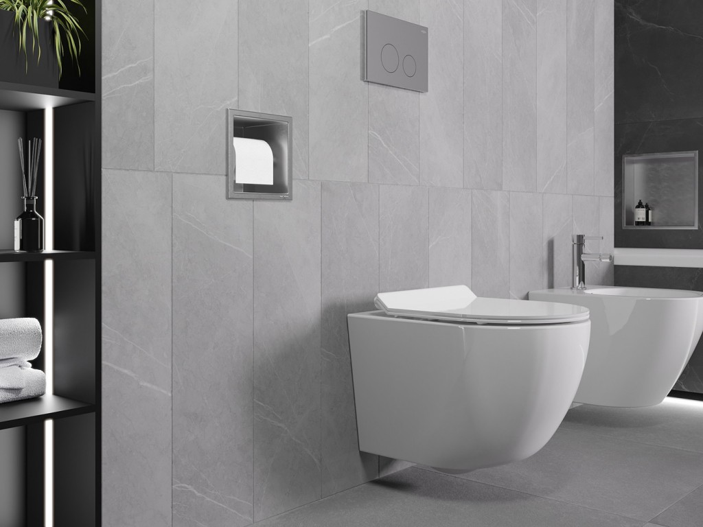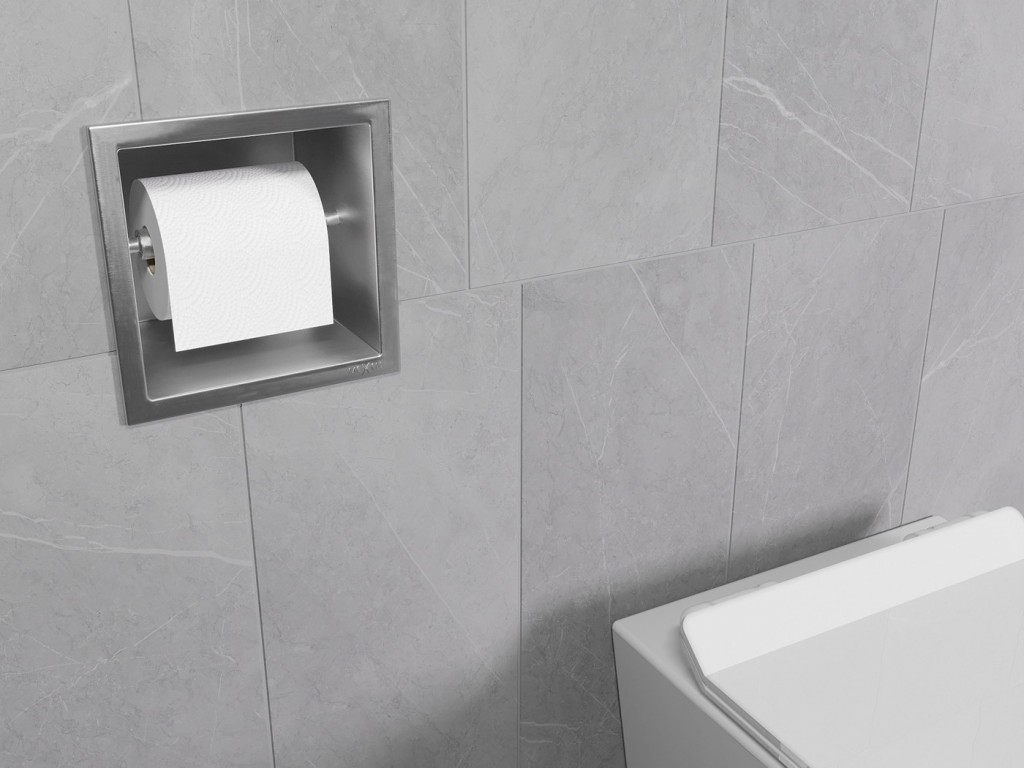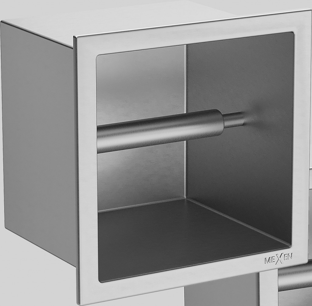 Výrobca Mexen vám ponúka policu X-Wall-P na zapustenú montáž do steny, určenú na rolku toaletného papiera.