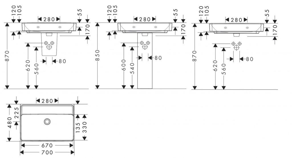 Umývadlo 700/480 bez otvoru pre batériu, bez prepadu