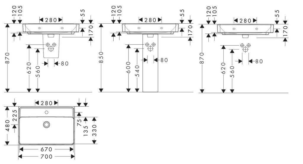 Umývadlo 700/480 s otvorom pre batériu, bez prepadu