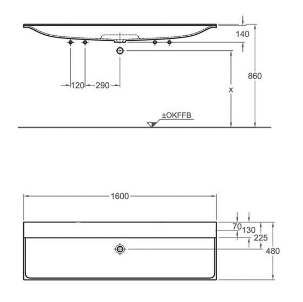Nábytkové dvojumývadlo bez prepadu a bez otvoru pre batériu