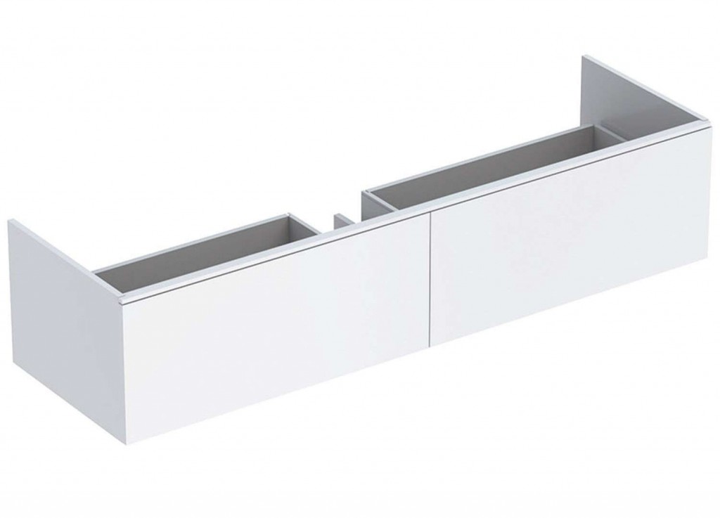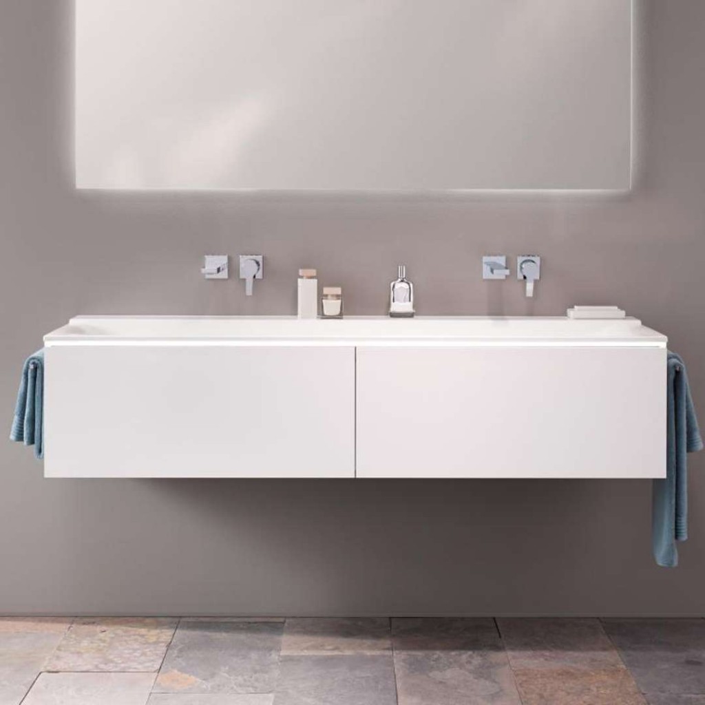 Závesná skrinka pod umývadlo z minerálneho kompozitu Varicor s dvomi zásuvkami a LED svietidlom