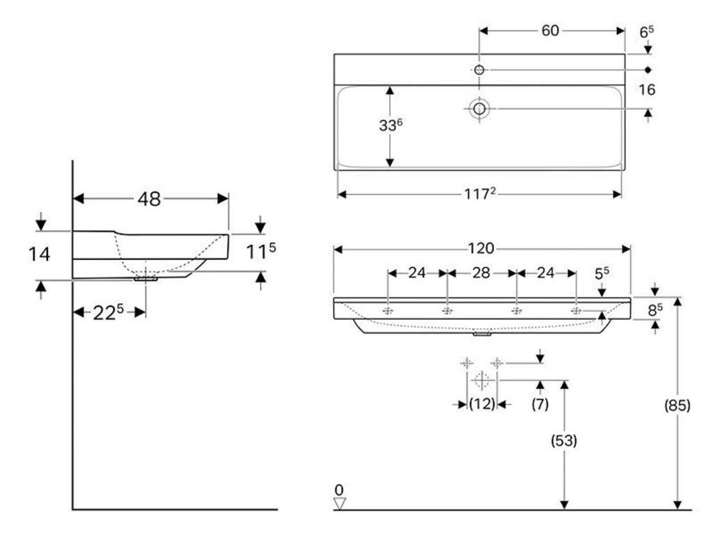 Umývadlo bez prepadu s jedným otvorom pre batériu