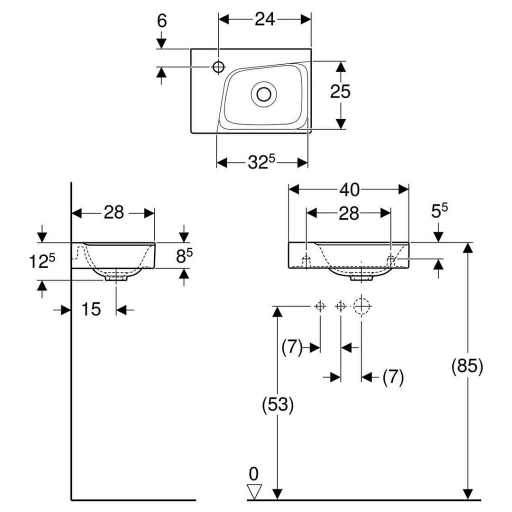 Umývadlo bez prepadu s jedným otvorom pre batériu