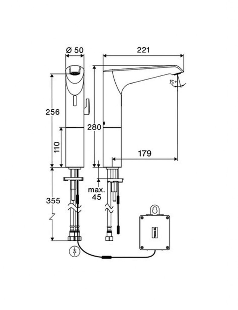 - Jednootvorová bezdotyková armatúra so senzorom Time-of-Flight (ToF)