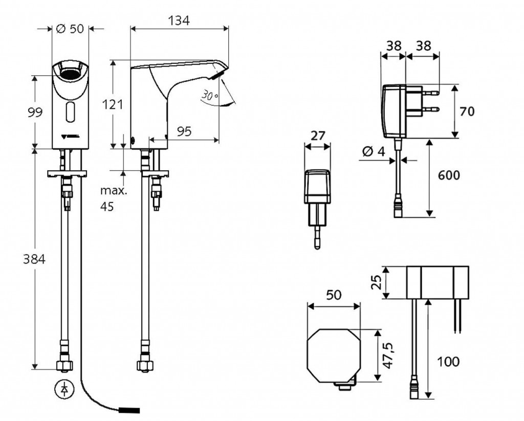 - prerušenie funkcie pri čistení umývadla / armatúry: 60 s