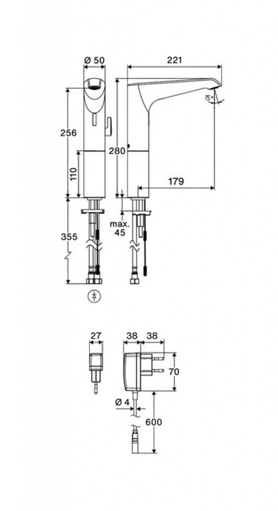 - Jednootvorová bezdotyková armatúra so senzorom Time-of-Flight (ToF)