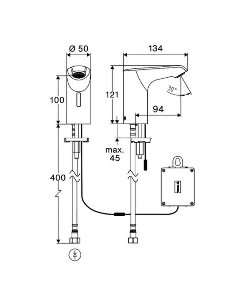 - Jednootvorová bezdotyková armatúra so senzorom Time-of-Flight (ToF)