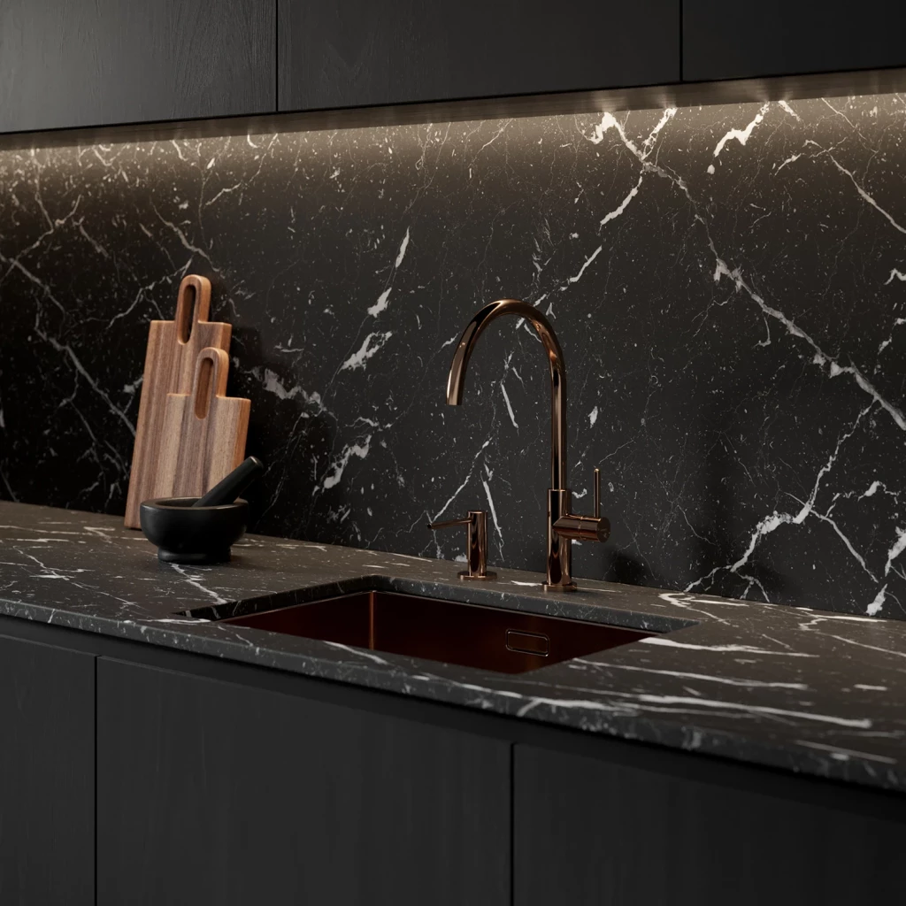 Meď je ušľachtilý povrch s teplou červenohnedou farbou a dokonale hladkým, lesklým povrchom. Obliečka bola vyrobená pokročilou technológiou PVD.