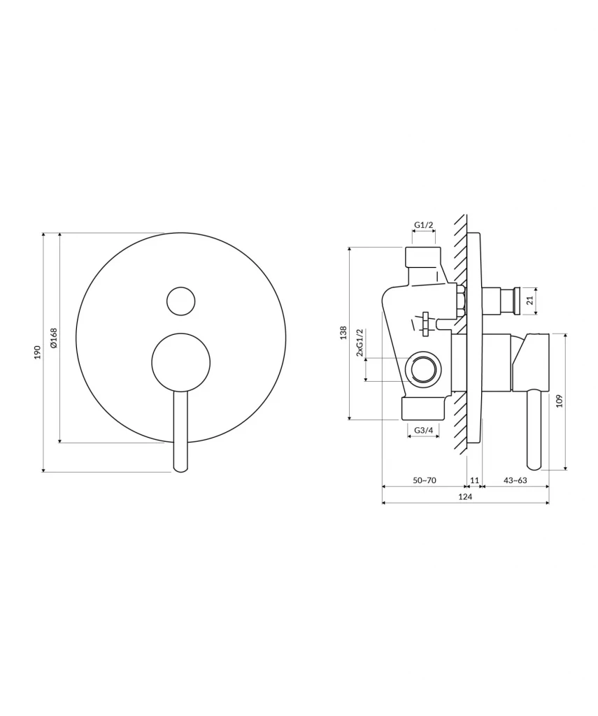 - dva vstupy (pre horúcu a studenú vodu): 1/2", dva výstupy zmiešanej vody: 1/2" a 3/4"