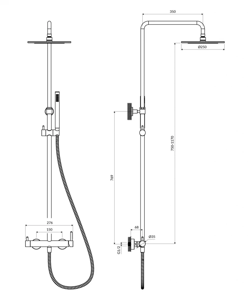 - sprchová hadica s mosadzným plášťom, dĺžka: 150 cm