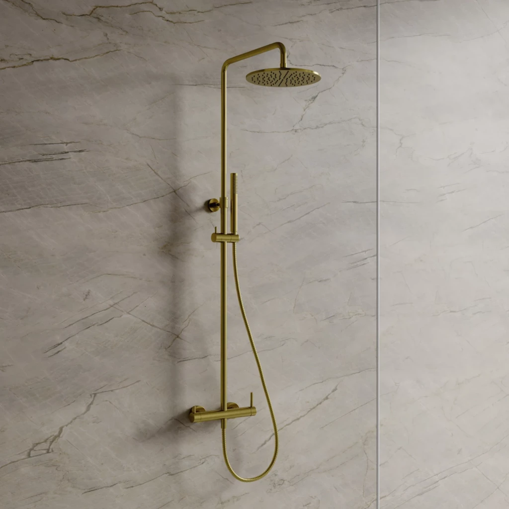 - mosadzná batéria do sprchy s keramickou kartušou a rozstupom 15 cm