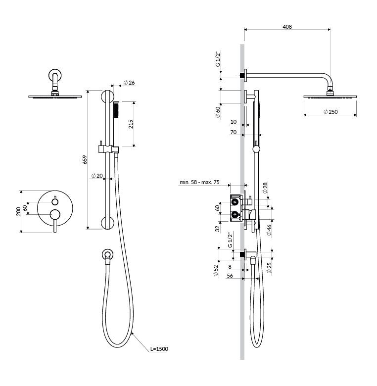 - Dažďová sprcha s ramenom ( WGSET1GR ), mosadz, rozmer: ø25 cm, dosah od steny: 41 cm