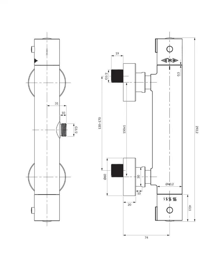 Batéria je vyrobená z kvalitnej mosadze triedy "A" a vybavená najkvalitnejšou termostatickou kartušou so zámkom 38 °C.