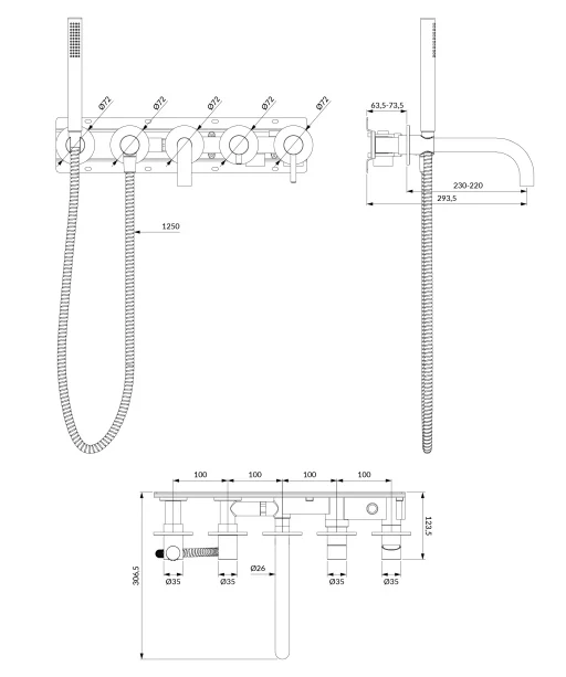 - nerezová flexibilná sprchová hadica, dĺžka: 125 cm