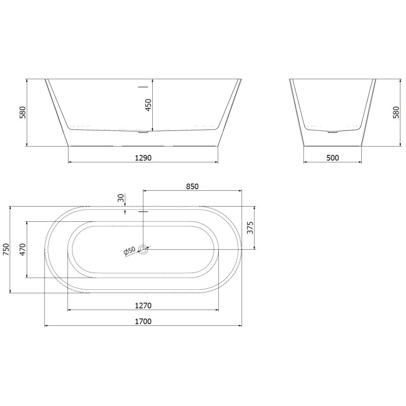 Špecifikácia produktu: Rozmery: 170 x 75 cm Výška: 58 cm Hĺbka: 45 cm Inštalácia: Voľne stojaci Materiál: Sanitárny akrylát Farba: Biela / Čierna Povrchová úprava: Strieborná Konštrukcia: Drážkovaná Otvor pre prepad: Áno Otvor pre batériu: Nie Sifón a záter batériu a UV žiarenie