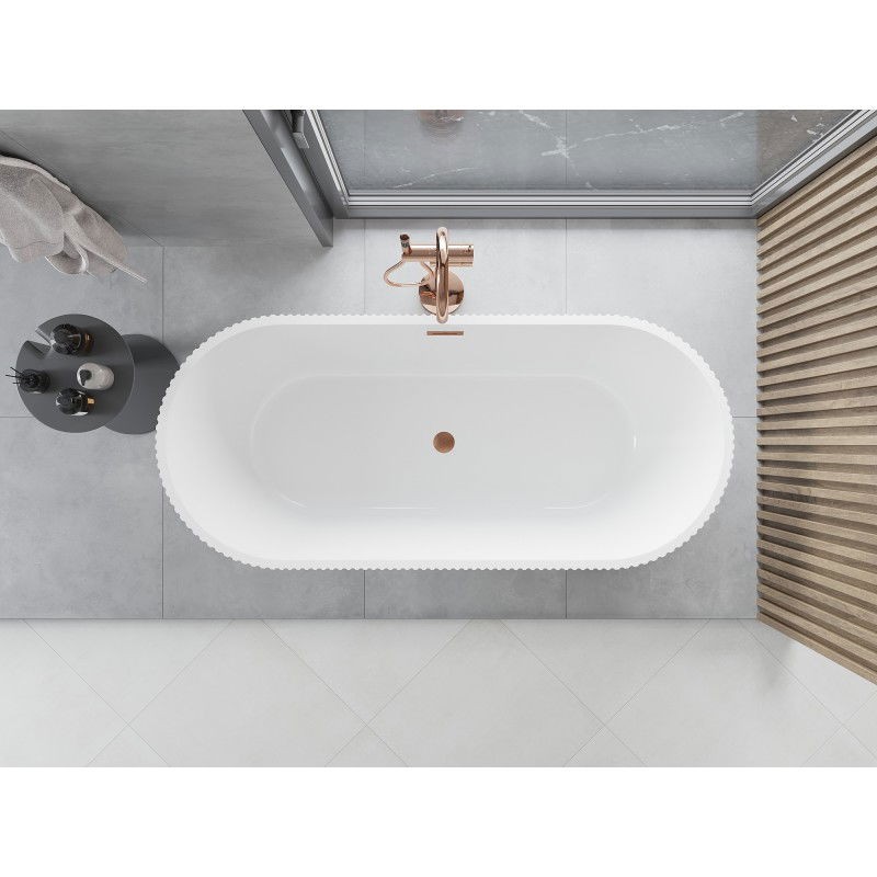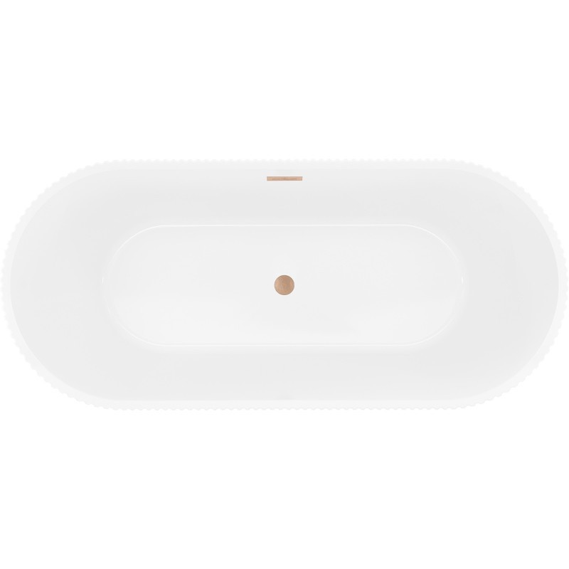 Špecifikácia produktu: Rozmery: 170 x 75 cm Výška: 58 cm Hĺbka: 45 cm Inštalácia: Voľne stojaci Materiál: Sanitárny akrylát Farba: Biela Povrchová úprava: Kartáčovaná meď Konštrukcia: Drážkovaná Otvor pre prepad: Áno Otvor pre batériu: Nie Sifón a zátka clic batériu a UV žiarenie