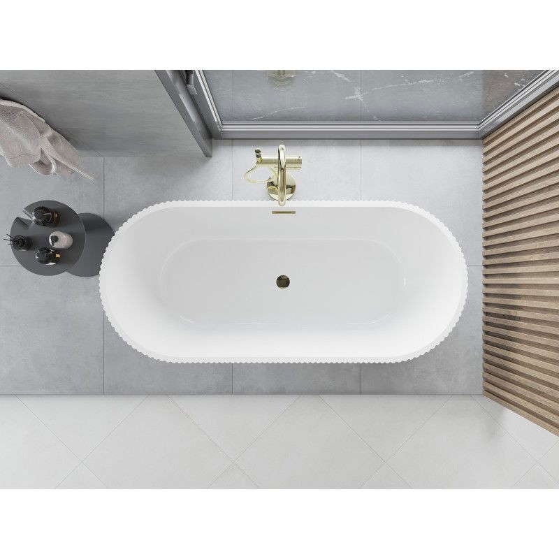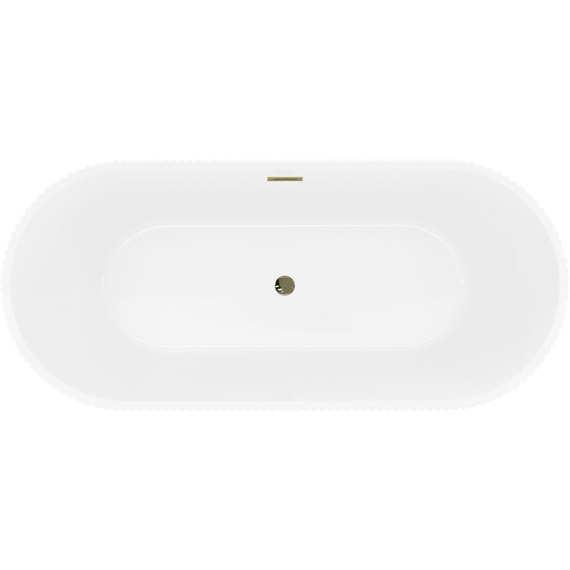 Špecifikácia produktu: Rozmery: 170 x 75 cm Výška: 58 cm Hĺbka: 45 cm Inštalácia: Voľne stojaci Materiál: Sanitárny akrylát Farba: Biela Povrchová úprava: Zlatá Štruktúra: Drážkovaná Otvor pre prepad: Áno Otvor pre batériu: Nie Sifón a zátka click-cla UV žiarenie
