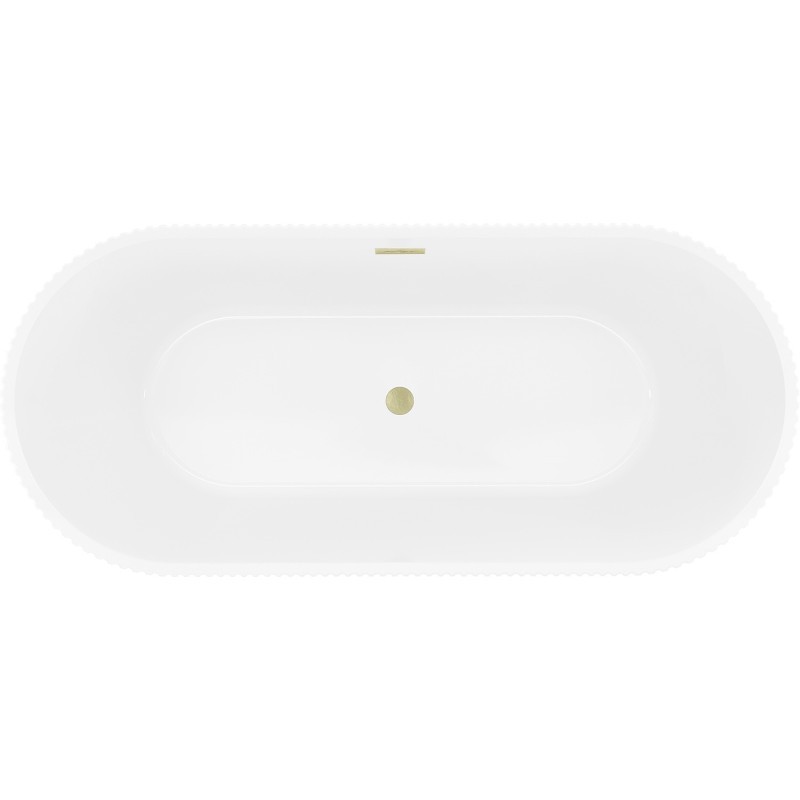 Špecifikácia produktu: Rozmery: 170 x 75 cm Výška: 58 cm Hĺbka: 45 cm Inštalácia: Voľne stojaci Materiál: Sanitárny akrylát Farba: Biela Povrchová úprava: Kartáčované zlato Konštrukcia: Drážkovaná Otvor na prepad: Áno Otvor na batériu: Nie Sifón a zátka click- a UV žiarenie