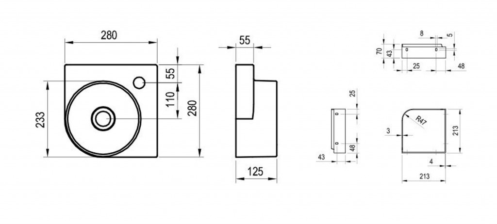 - rozměry 280 x 280 x 125 mm