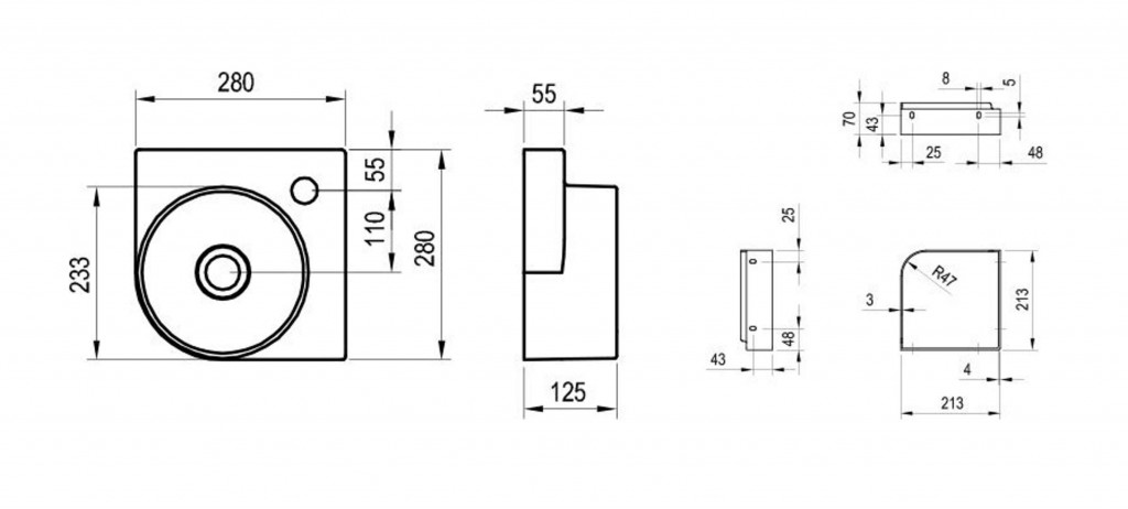 Konzole a kryt odtoku nejsou součástí dodávky, je nutné objednat zvlášť.