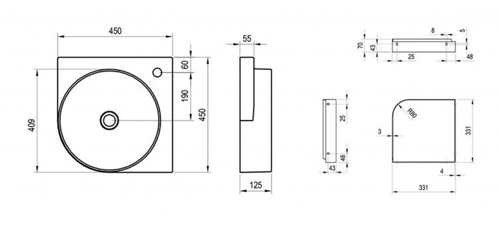 - rozmery 450 x 450 x 125 mm