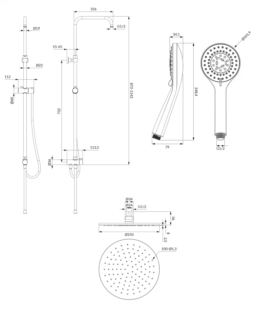 Sprchová súprava je určená na kombináciu s nástennou sprchovou alebo vaňovou batériou.
