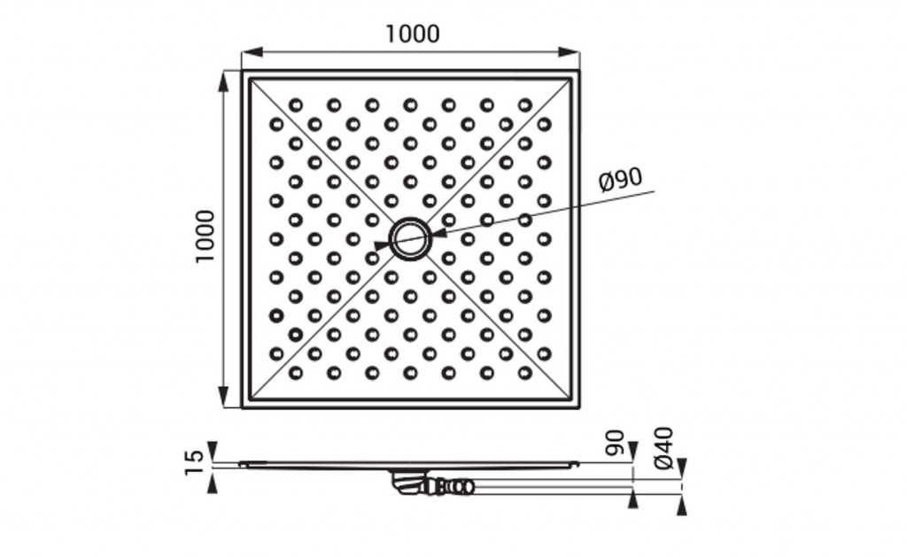 nerezová lisovaná sprchová vanička 1000 x 1000 mm