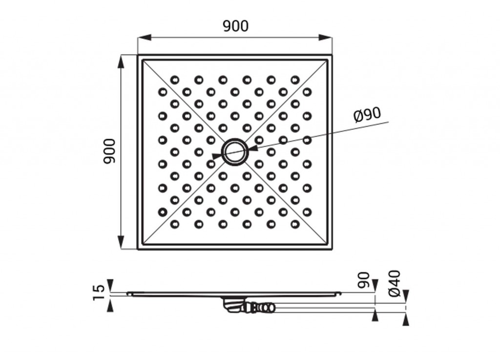 nerezová lisovaná sprchová vanička 900 x 900 mm