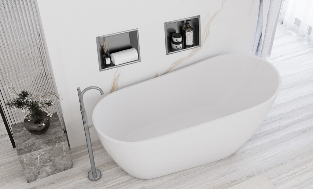 Kúpeľňová polička je praktickým riešením na usporiadanie priestoru v kúpeľni. Vyrobené z odolného materiálu, zaisťuje odolnosť a stabilitu. Svojím funkčným dizajnom dokonale zapadne do rôznych kúpeľňových aranžmánov, umožní vám uložiť kozmetiku, uteráky a ďalšie potrebné doplnky. Vďaka možnosti inštalácie do výklenku police dokonale využíva dostupný priestor a zároveň dodáva kúpeľni elegantný vzhľad.