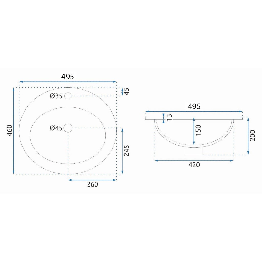 Samotné umývadlo na dosku je dlhé 51,5 cm a hlboké 46 cm , čo nabáda k tomu, že je možnosť umiestnenia dvoch umývadiel vedľa seba /pokiaľ vám priestor dovolí/. Umývadlo má bezpečnostný prepad, ale má otvor pre batériu. Preto k nemu vyberajte nízku umývadlovú batériu. Vždy sa snažte vyberať takú, aby ústie kohútika smerovalo doprostred umývadla. Jedine tak zabránite nechcenému rozstrekovaniu vody a zároveň budete mať dostatok priestoru na umývanie rúk.