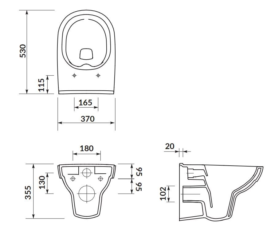 Závesná WC misa CITY NEW CLEAN ON / bez oplachového kruhu / s zadným odtokom. Funkcia splachovania 3/5l. WC misa sa odporúča montovať s podomietkovým systémom.