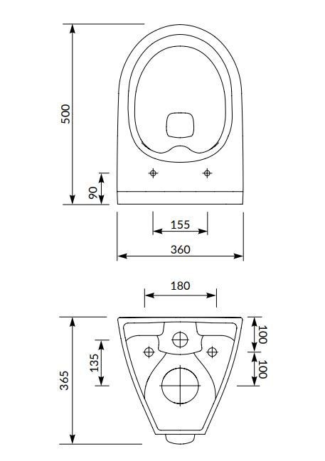 Závesná misa MILLE PLUS CLEAN ON/bez oplachového kruhu/ so zadným odtokom, funkcia splachovania 3/5l sa odporúča montovať s podomietkovou stelažou.