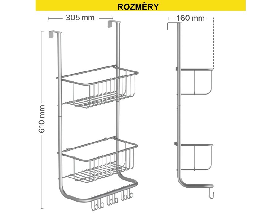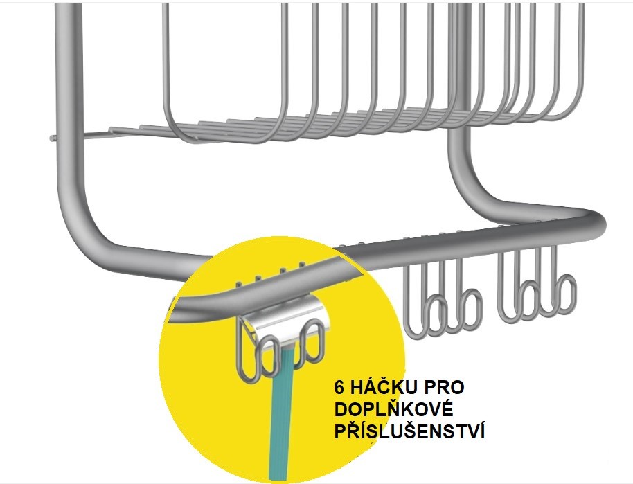 - s dvoma veľkými úložnými košíkmi a 6 háčikmi
