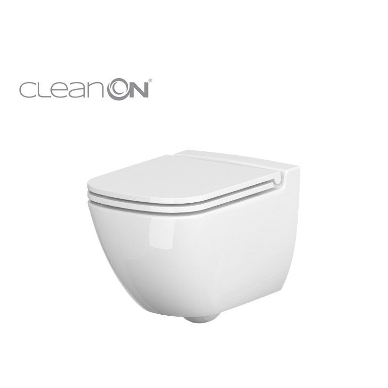 Závesná WC misa CASPIA NEW CLEAN ON / bez oplachového kruhu / s unikátnym bielym povrchom keramiky má zadný odtok. Funkcia splachovanie 2 / 4l alebo 3 / 5l, ktorá výrazne zníži spotrebu vody. Technológia CleanOn, na rozdiel od tradičných modelov, nemá vnútorný golier. Oplachovanie voda dôkladne umyje celý vnútorný povrch a zanechá ho čistý. V ťažko prístupných miestach sa tak nehromadí nečistoty a baktérie.