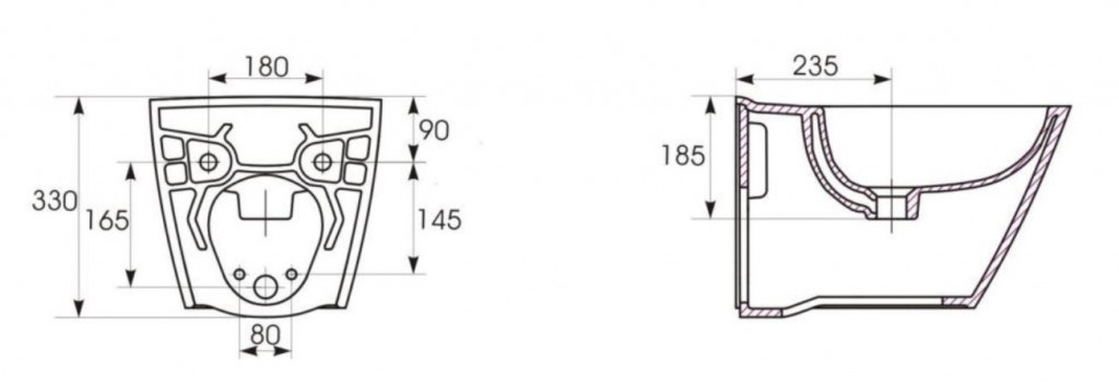 Závesný bidet CITY SQUARE s otvorom pre batériu a prepadom. Je určený na inštaláciu so skrytým rámom.