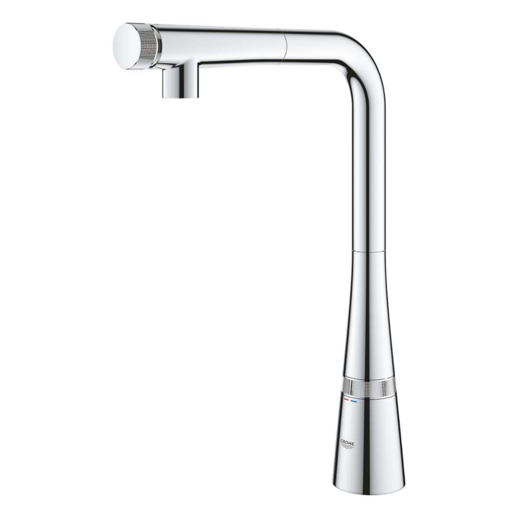Batérie Zedra SmartControl umožňuje reguláciu prúdu vody a jej teploty jednou rukou. Vysoká výpust uľahčí plnenie veľkých hrncov a vyťahovacie spŕška zvyšuje dosah použitia batérie. Vďaka výkonným magnetom sa tiež sprchová hlavica po použití automaticky a plynule zasunie späť do svojej pôvodnej polohy. Táto drezová batérie tiež disponuje otočným ventilom pre reguláciu objemu vody.