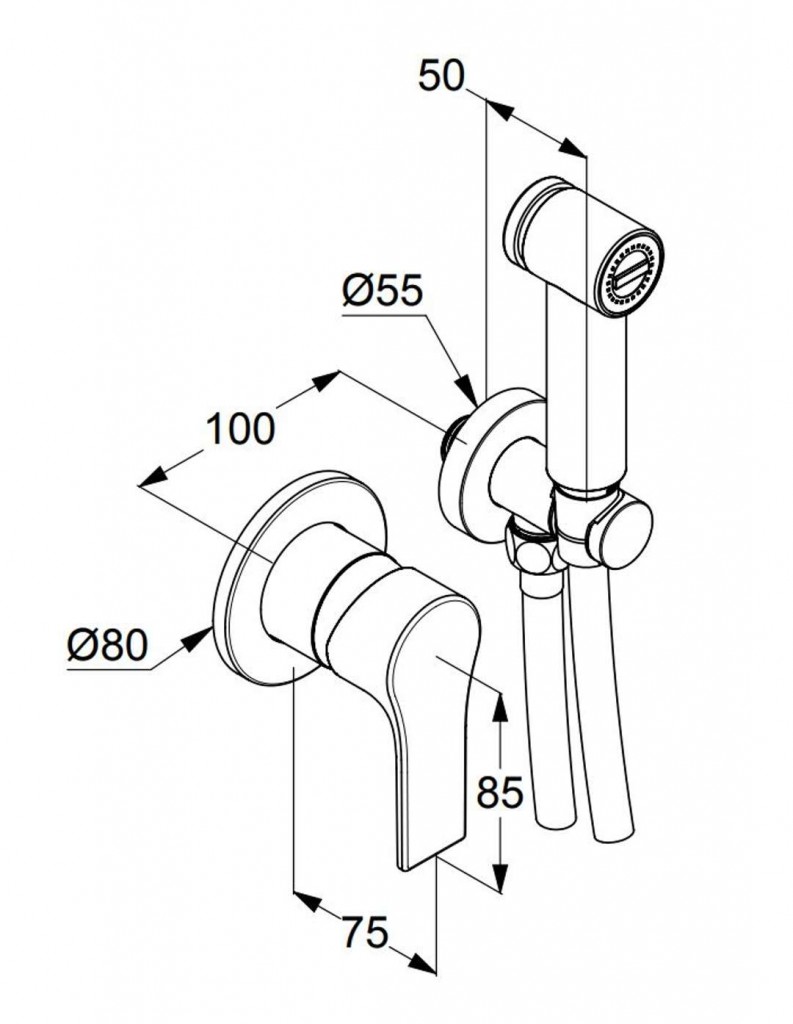 Páková podomietková batéria s bidetovou sprškou, vrátane podomietkového telesa