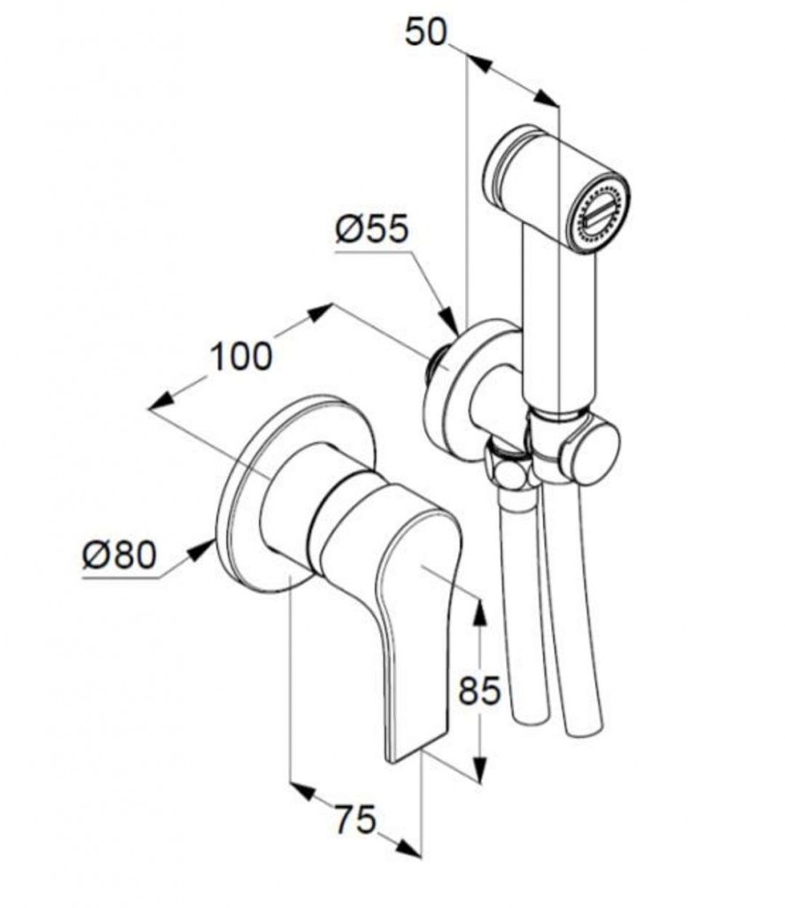 Páková podomietková batéria s bidetovú spŕškou, vrátane podomietkového telesa