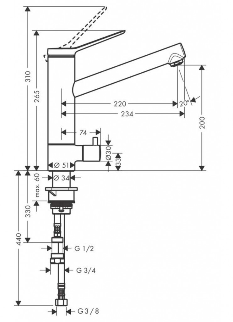 HANSGROHE - Zesis M33 Drezová batéria 200, uzatvárací ventil spotrebiča, CoolStart, chróm (74807000)